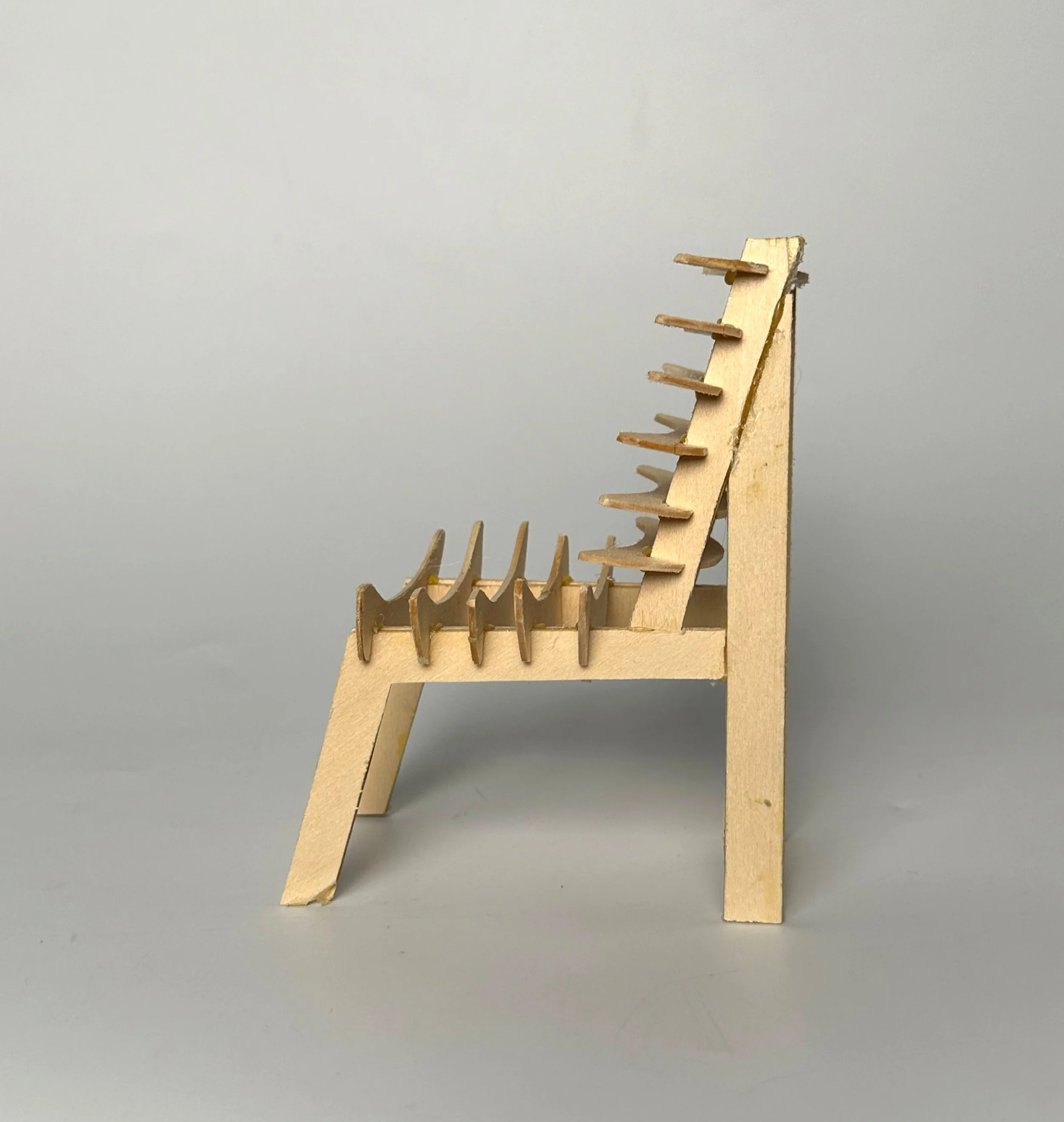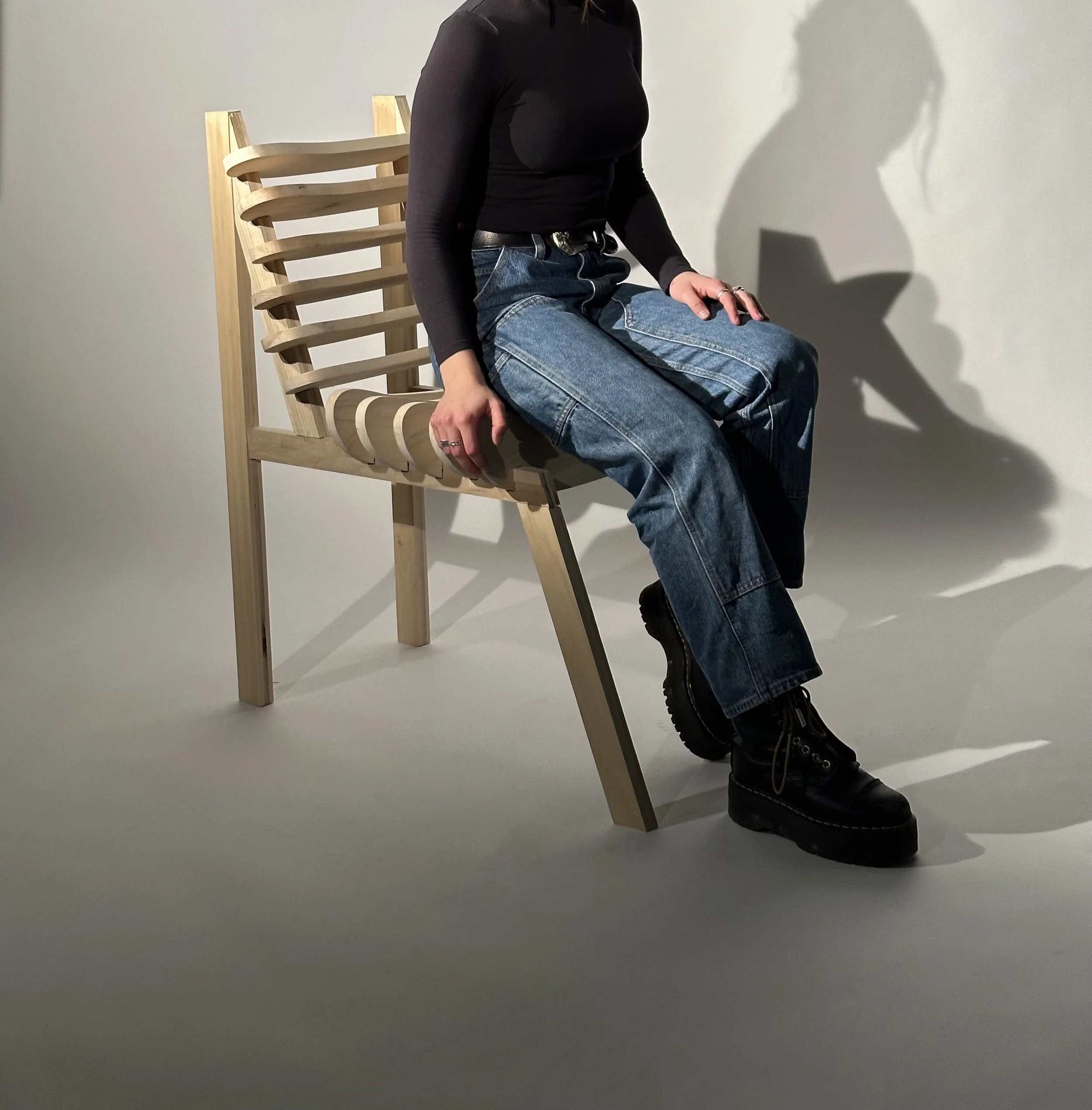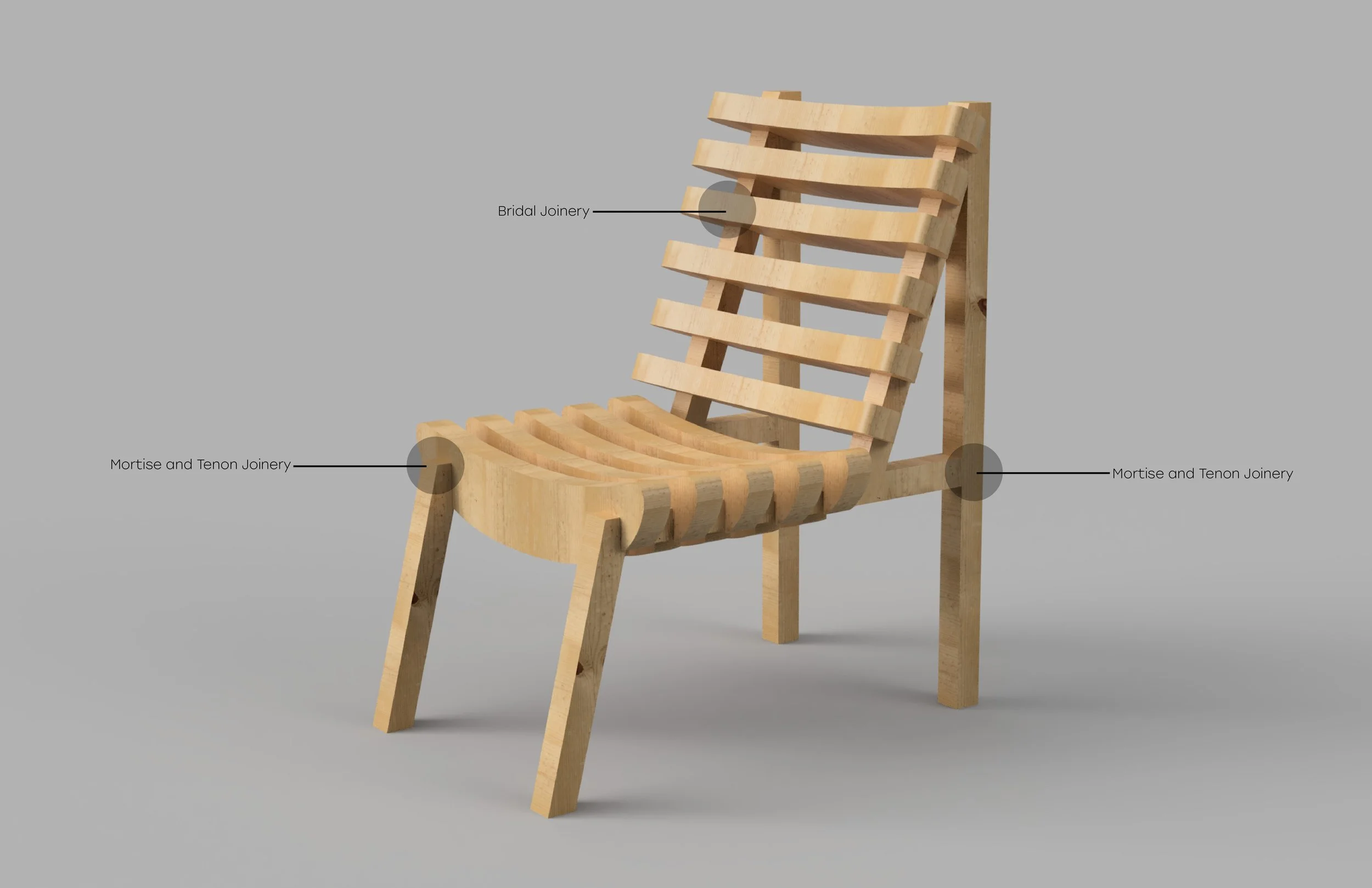 A chair inspired by organic functionalism, combined with the use of basic wood joinery .