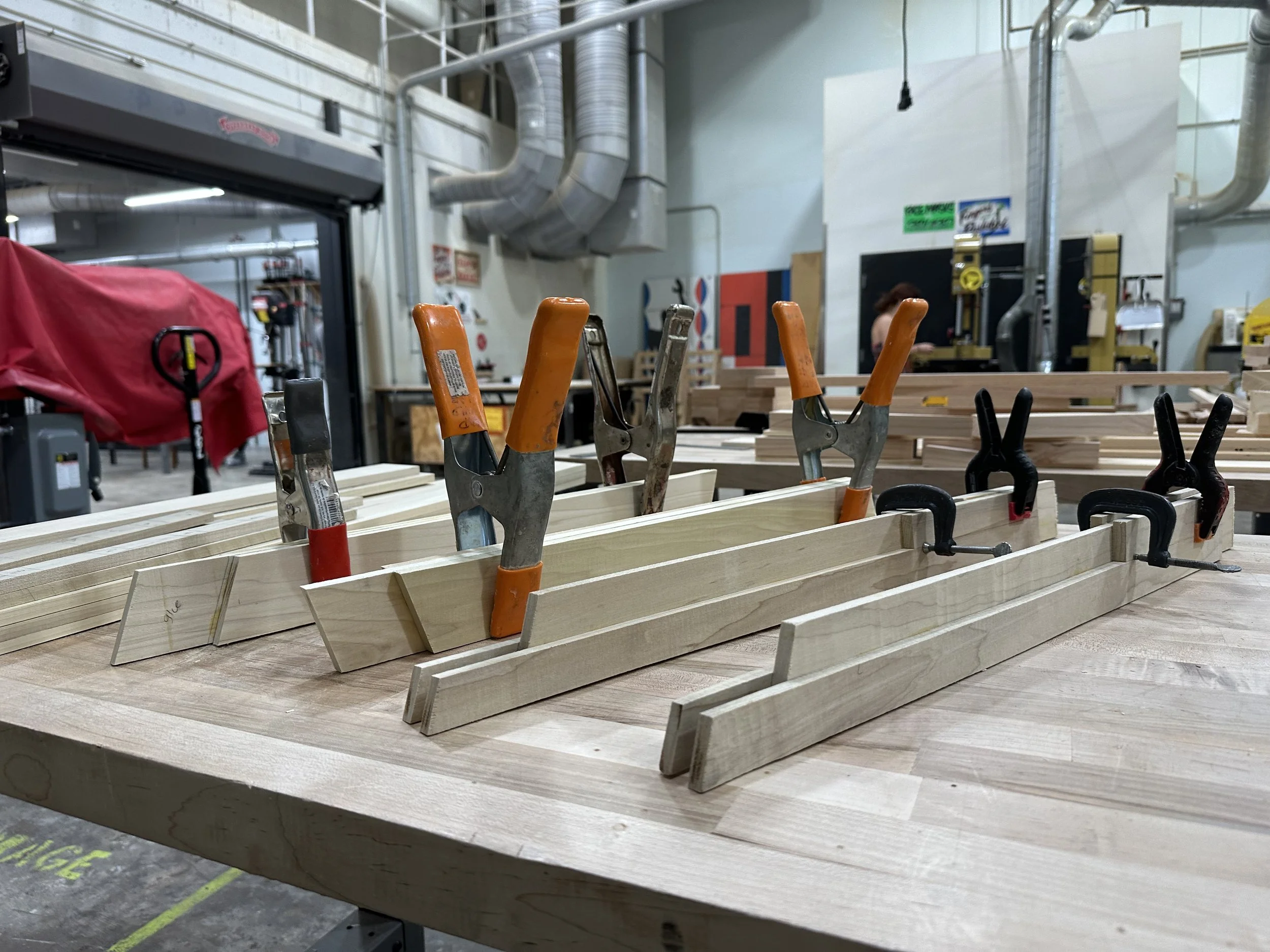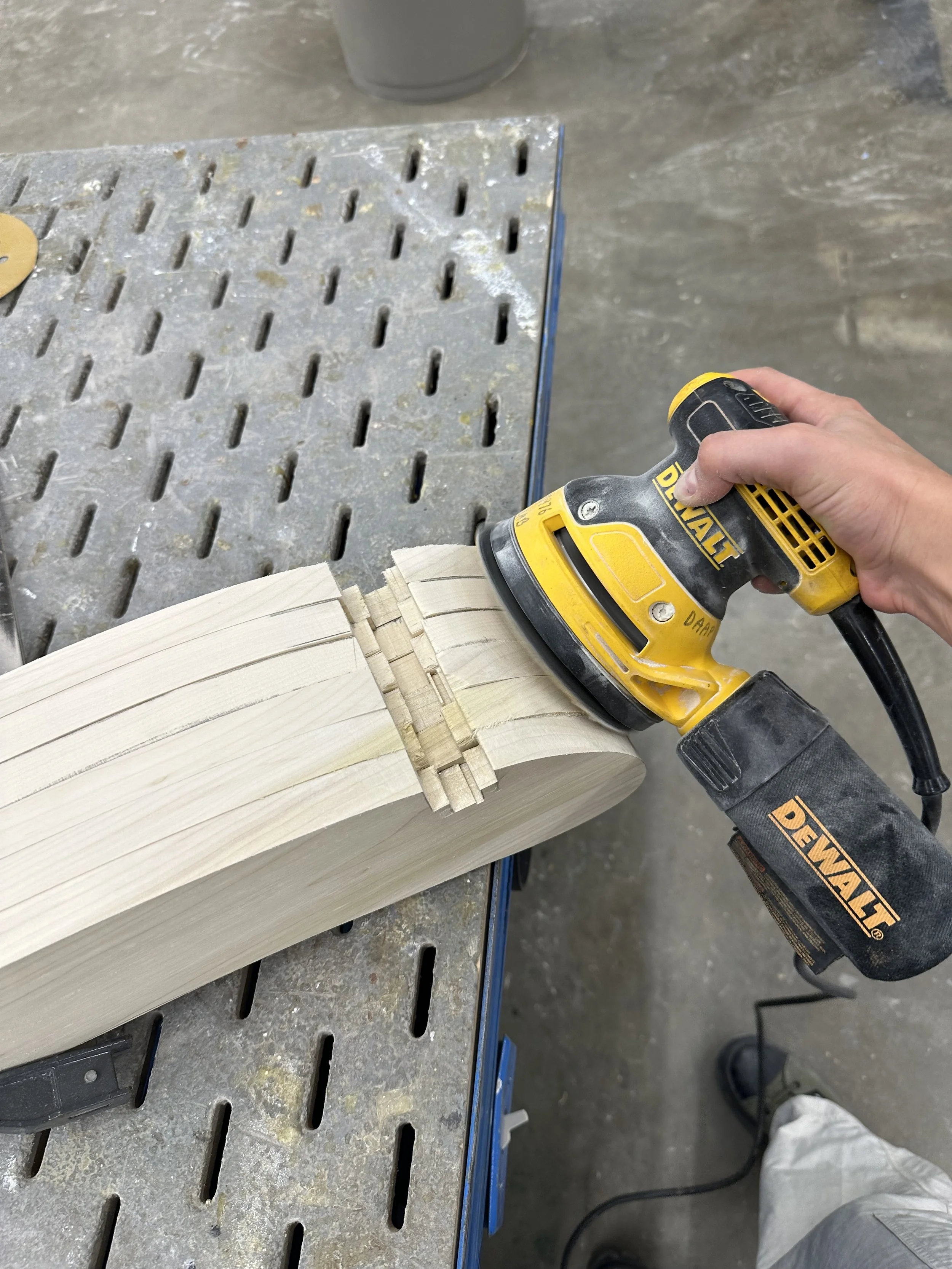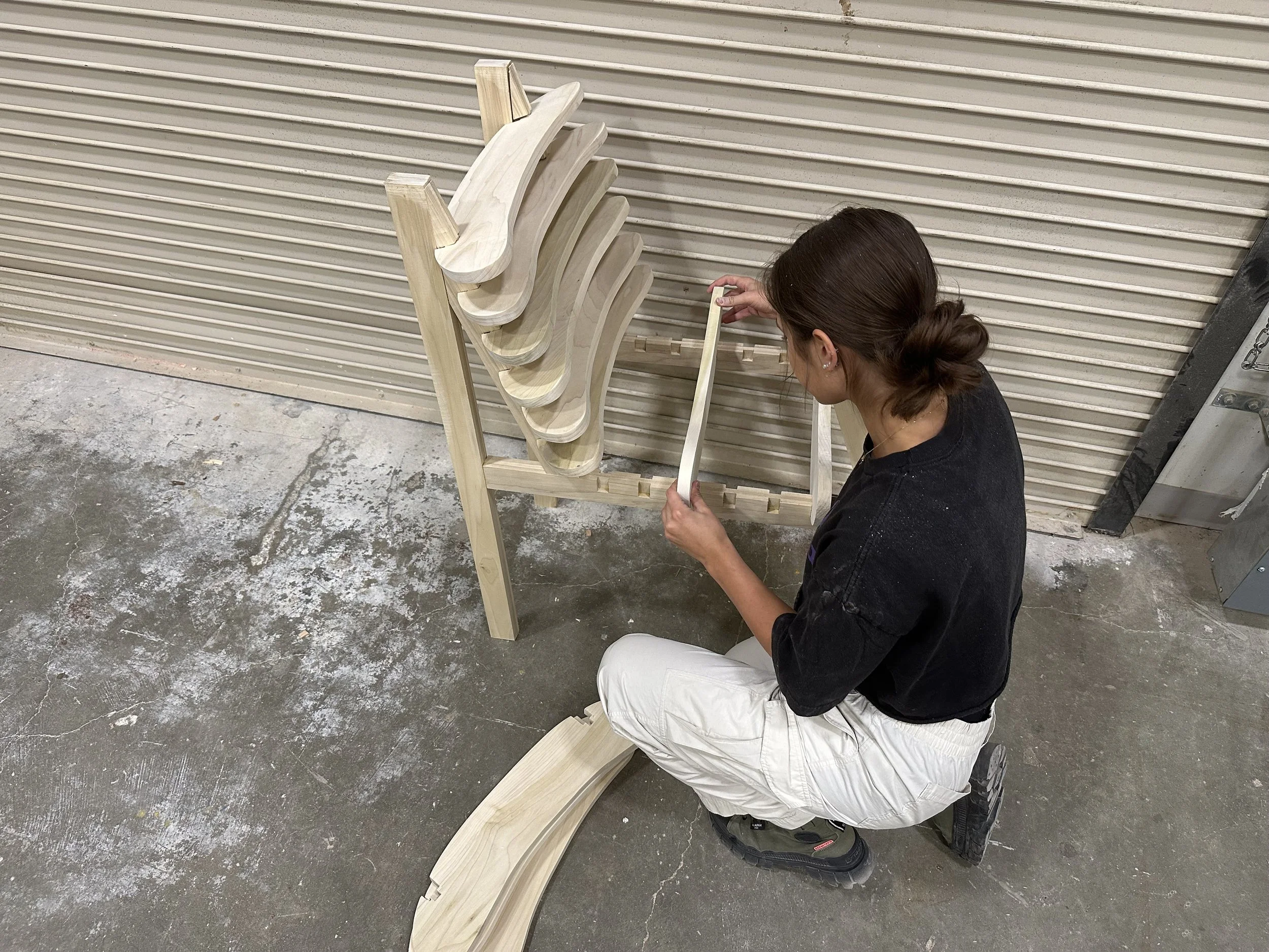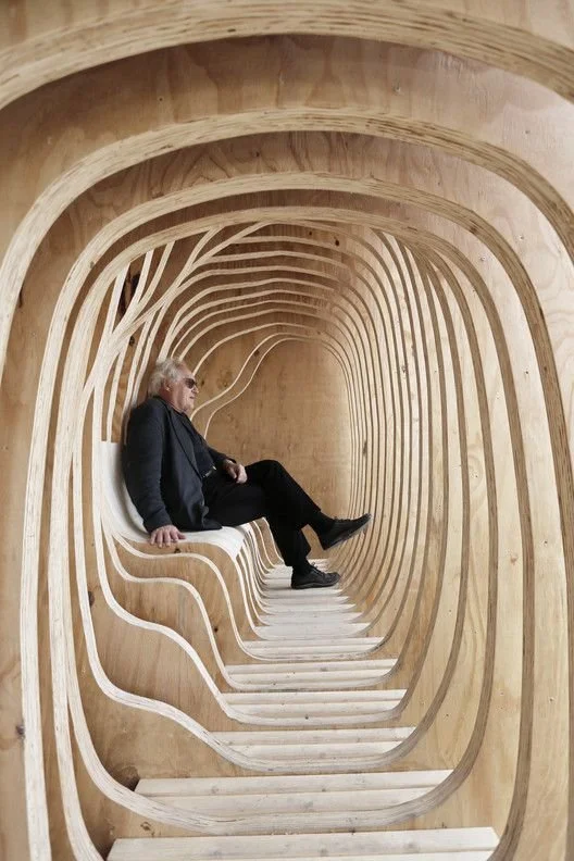 A chair inspired by organic functionalism, combined with the use of basic wood joinery .