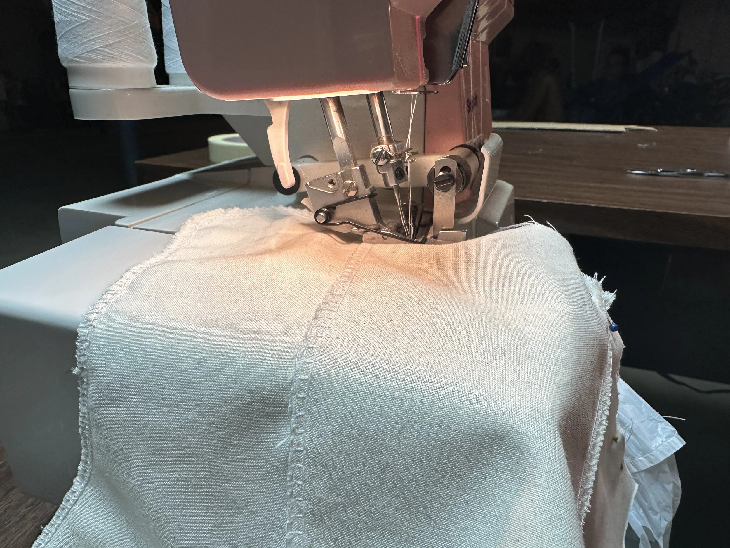 Use a larger seam allowance with the finalized nylon material to better emphasize the shape of the bag.